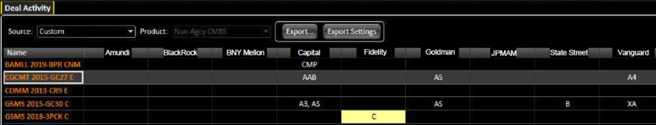 The Deal Matrix Screen can be filtered by open BWICs, today/yesterday’s trades, or a custom list of bonds and can be exported with a detailed record of all tranche matches against the deals entered. This allows the user to quickly find silos of liquidity with their client base in real time.